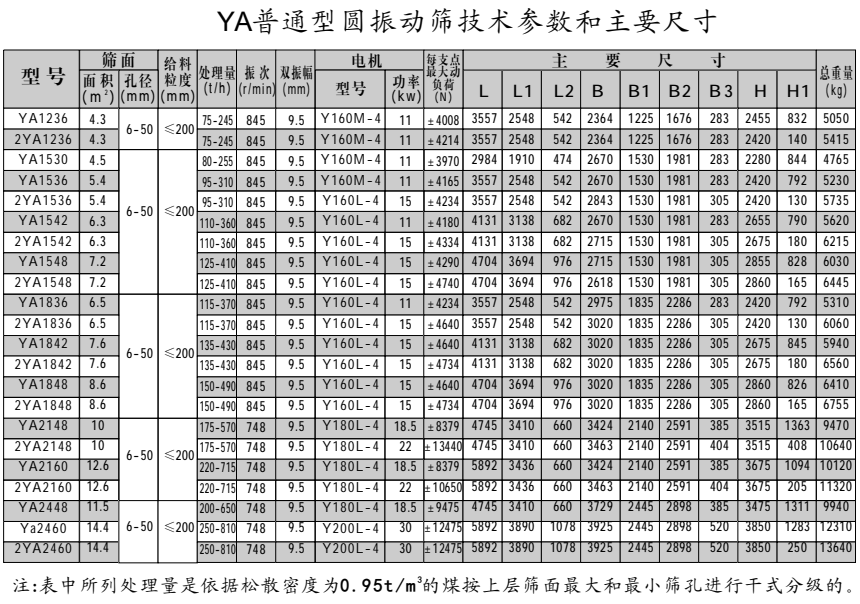 產(chǎn)品簡介:YA系列圓振動篩運動軌跡為圓形,可供煤炭、礦山、冶金、建材、電力、水利、輕工和化工等行業(yè)各種物料分級使用。該系列篩機采用高強度螺栓聯(lián)接框架式結(jié)構(gòu),大游隙軸承稀油潤滑的振動器。具有結(jié)構(gòu)堅固耐用、噪聲低、維修方便等優(yōu)點。